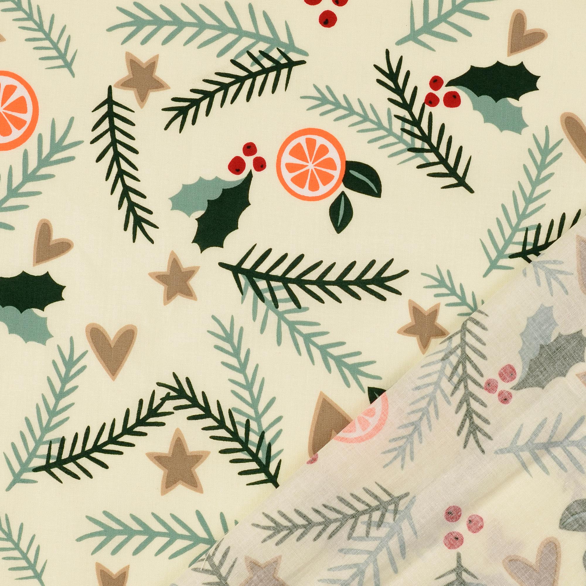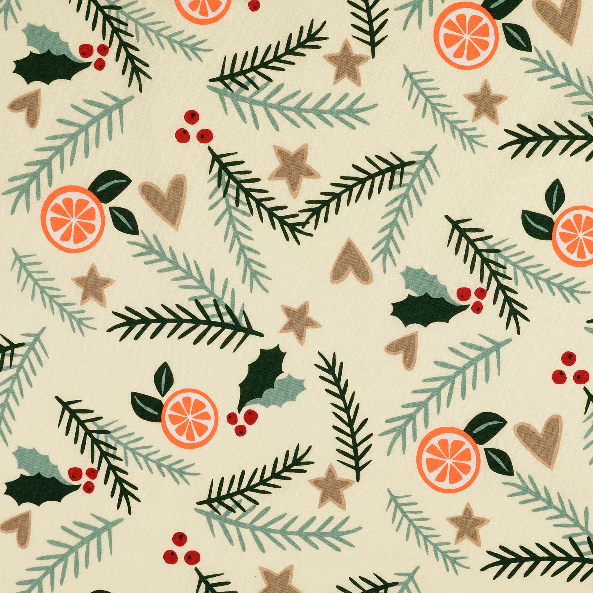 Baumwolle mit Weihnachten-Motiv Farbe Nude