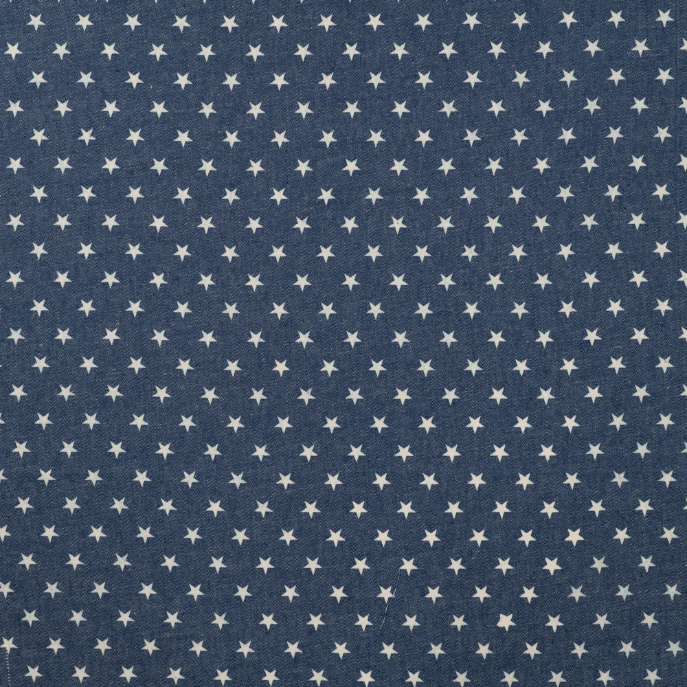 Leichter Jeansstoff Chambray Kleine Sterne weiß auf Jeansblau