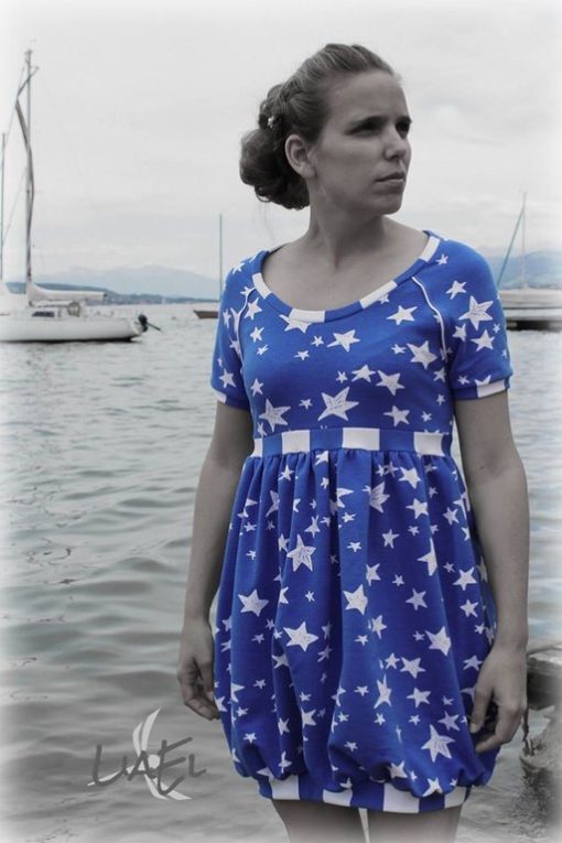 Der Schnitt Maxima behinhaltet 4 verschieden Nähvarianten und 2 verschiedenen Halsausschnitten (Rundhals und V-Ausschnitt). Maxima kann man mit kurzen, 3/4 – und langen Ärmeln nähen.