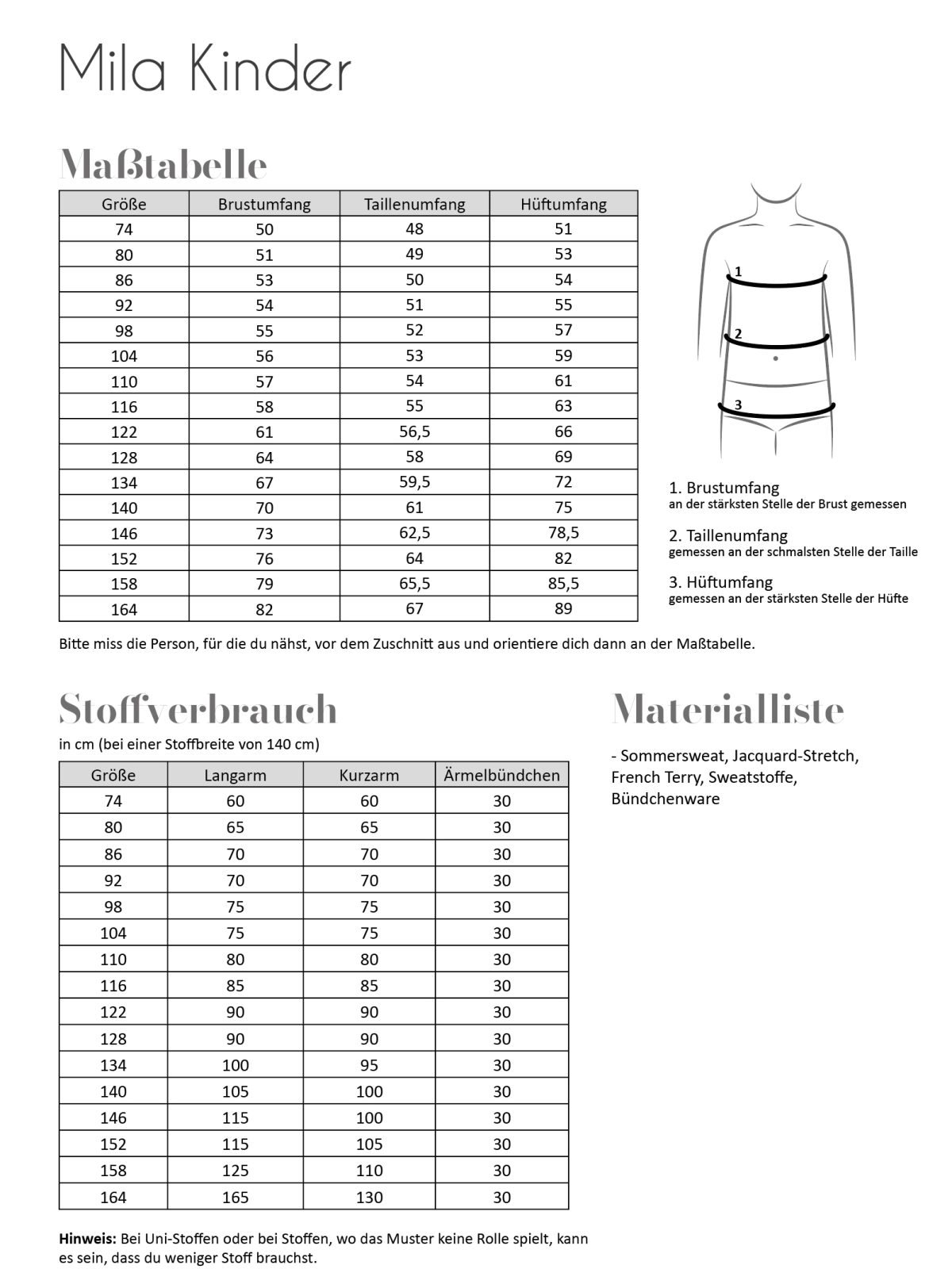 Das Schnittmuster gibt es in den Größen 74 bis 164.