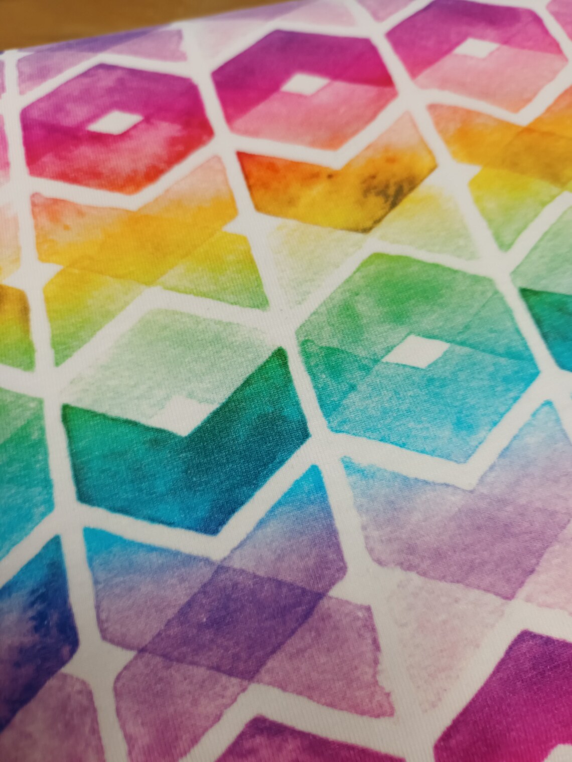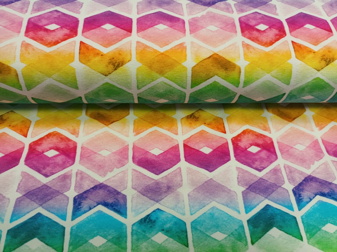 Jersey weiß mit bunten grafischen Formen, Watercolor